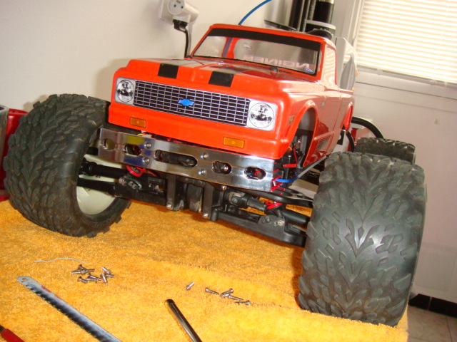 Si je trouve un e-maxx, je tenterais de le re-looker surement dans l'esprit du clod. (carrosserie plus haute sur le chassis et pneus de diametre plus important)