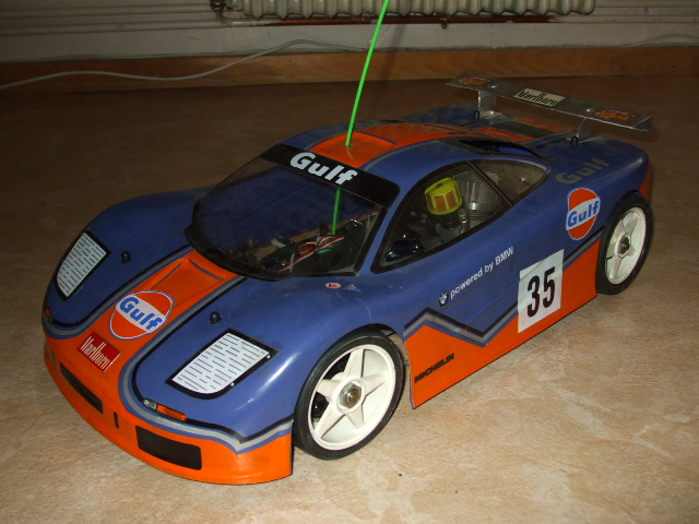ce n est pas une 1/8em. mais une 1/7 em. c est une serie seven de chez avioracing. j en ai une en 4*4 avec carrosserie de mac laren f1. ça marche pas mal. pour les pieces regarde sur e bay on en trouve pas cher . moi je viens d en acheter une pour refaire la mienne.