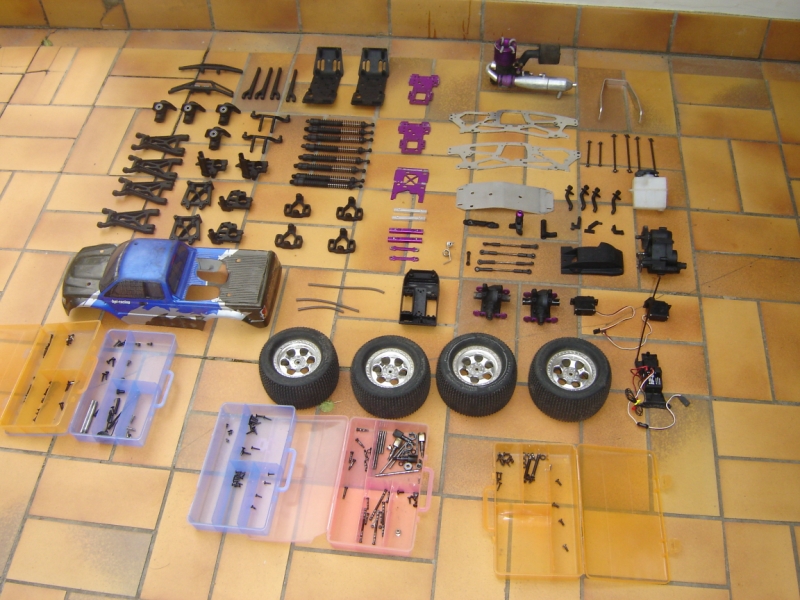 J'ai ensuite nettoyé toutes les pièces qui était bien crades, et le voilà éparpillé sur ma terrasse :