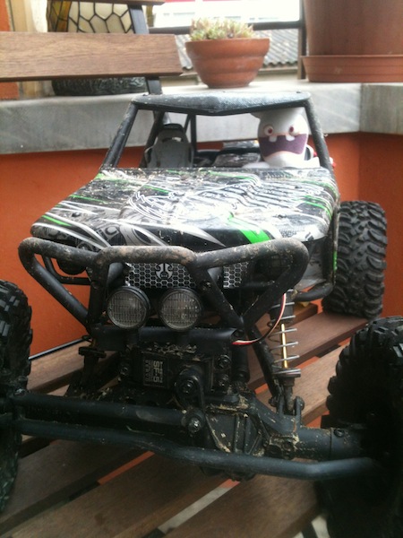il a juste un centre de gravité plus haut de par son chassis et il aura tendance à se renverser dans certain cas mais autrement, sa morphologie en fait plus un véhicule de crawl qu'un basher type savage ou même summit parce qu'il a les differentiel bloqué d'office et les pont libre comme, justement, les crawler pure.