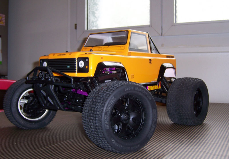 Une Première Carro Hpi Defender sur mon Savage X, Couleur Tamiya Camel Yellow Ps-19