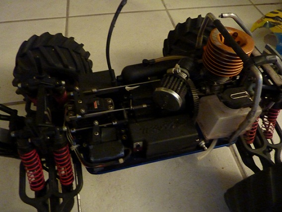 Vends T-Maxx, télécomande 3 voie, moteur RB 3.75 5 transferts, cardans renforcé, slipper rrp, amortisseurs titane,4 jantes et pneu piste en sus, piéces de rechange, boite de transport.