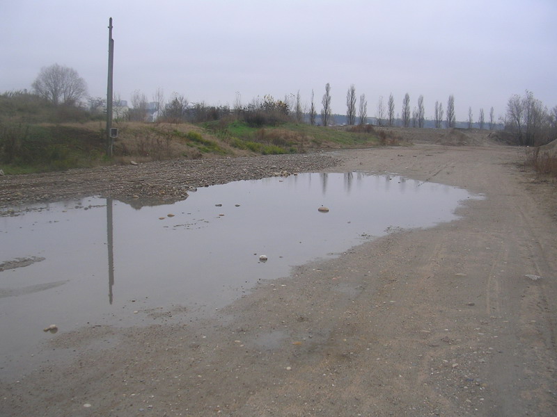 Dès l'entrée du terrain, on voit qu'il y a de la flotte. On peut voir aussi que de la terre argileuse et caillouteuse à été rependue. D'un coté c bien cette terre car ça enlève qques flaques