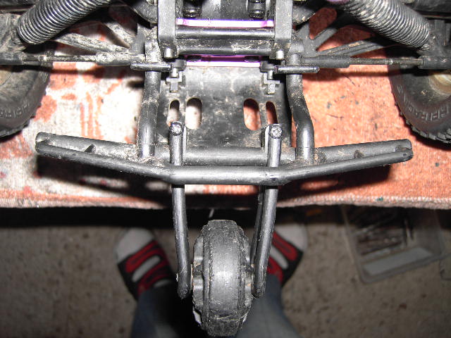 Quand j'ai changé mon chassis ( centre de gravité plus bas ) je ne pouvais plus passé le rotostart a cause de la wheelie bar j'ai donc trouvé une solution qui j'éspère pourra vous servir.