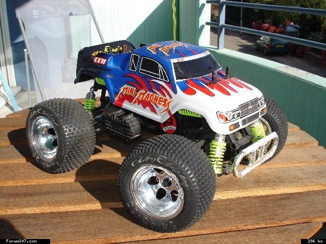 Ensuite, j'avais enchaîné avec un Cen mini madness, un mini monster électrique que j'avais monté sur roulements et dont j'avais changé le moteur par un Tamiya RZ super stock: